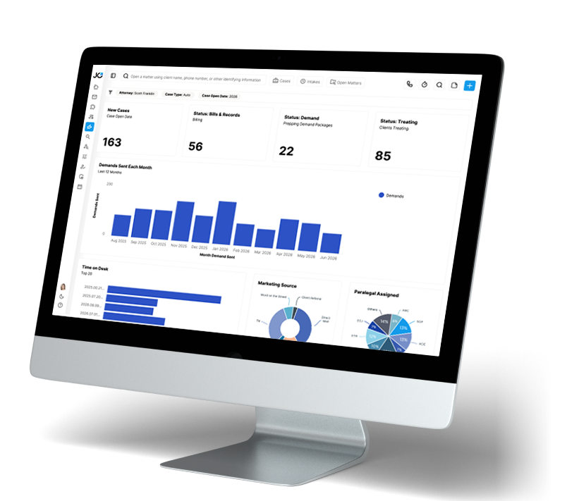 Jove gives your firm the awareness to lead and the tools to deliver — connecting marketing, casework, and cashflow in one intuitive command center. From high-level performance insights to daily workflow visibility, it’s everything you need to make smarter decisions, faster.