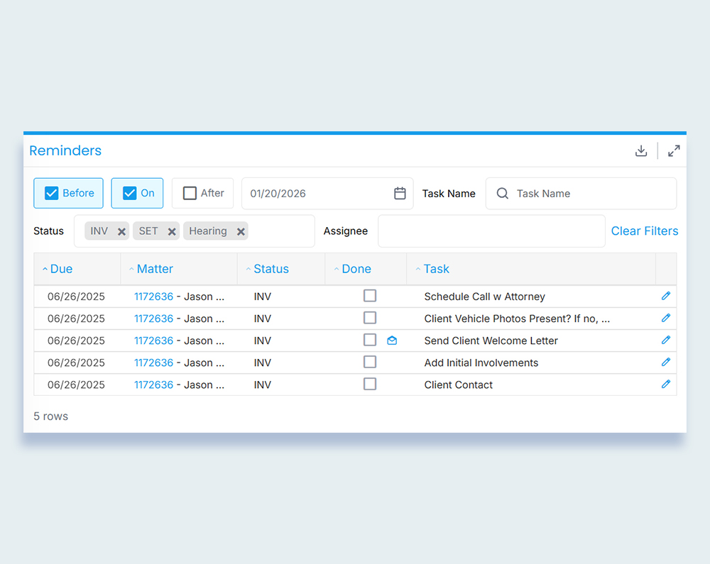 Manage every case, every task, and every deadline from one connected workspace. Case Management gives you real-time oversight of every matter and milestone.