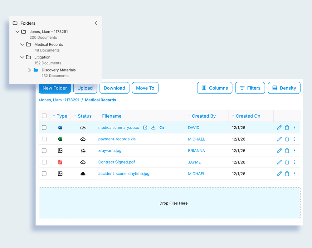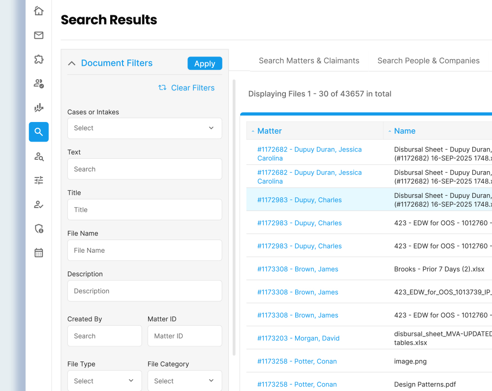 Eliminate the chaos of shared drives and outdated folders. Jove centralizes every document, file, and piece of evidence under one roof with smart search and version control.